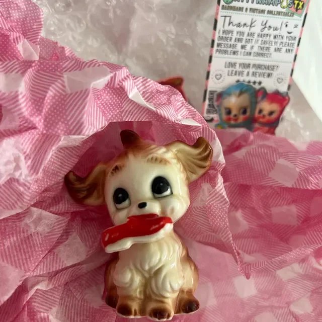 Standing at 4.5 inches tall, this delightfully strange figurine is inspired by vintage kitschy poodles, reimagined with elongated necks, dreamy closed eyes, expressive faces, and just a little extra chaos with three heads.