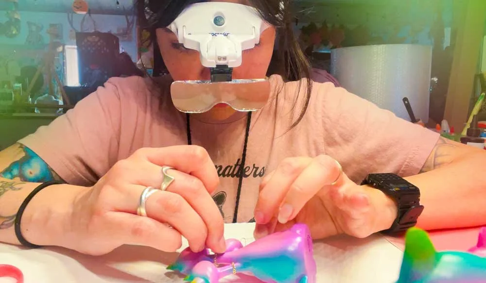I create and meticulously hand-paint my own figurines, which begin as digital sculpts and are brought into the real world through 3D printing. Alongside that, I sew, design stickers, greeting cards, and crochet wearable goods and other such things, exploring different mediums depending on where inspiration takes me. Each piece is made in small batches, with attention to detail and an appreciation for the imperfect.