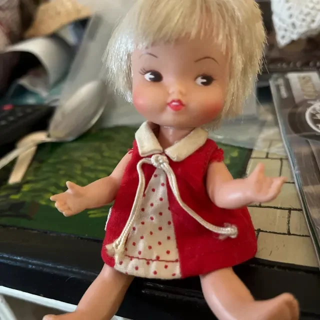 A smooth satin gloss finish and tiny handmade bows complete the look, creating a balance of sweet nostalgia and slightly uncanny charm.