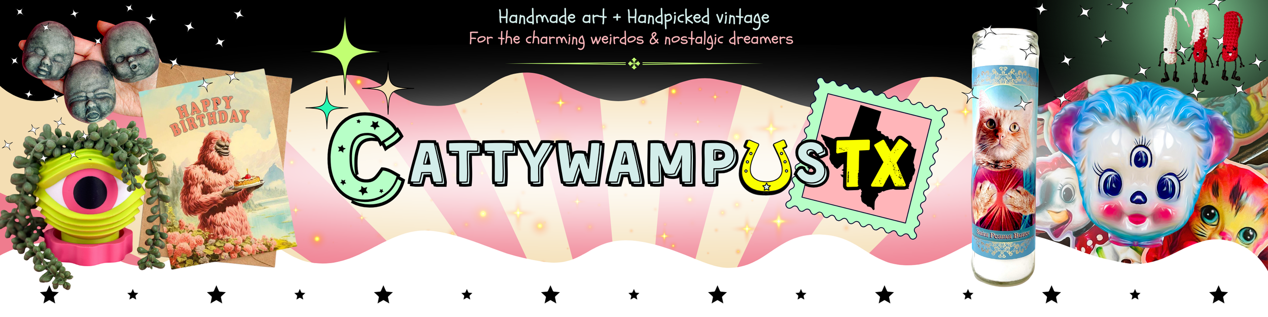 Inspired by vintage kitsch, thrifted brik brak, and things that feel familiar but hard to place, everything here lives somewhere between playful and a little strange. I never quite know what I’ll make next, but it’s always something a little eccentric.